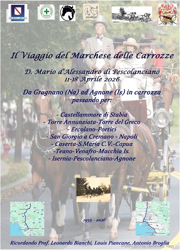Nella ricorrenza del 50° anniversario della morte del duca D. Mario d’Alessandro di Pescolanciano, è stato reso omaggio alla sua figura di gentiluomo napoletano che fu un grande mecenate verso la città di Napoli donando la sua corposa collezione di carrozze (circa venti) e di finimenti (più di un centinaio) al museo di Villa Pignatelli. E’ stato deposto così un mazzo di fiori ed un lumino al di lui sepolcro presso il cimitero della Purificazione (via dell’Ardenza in Livorno).
